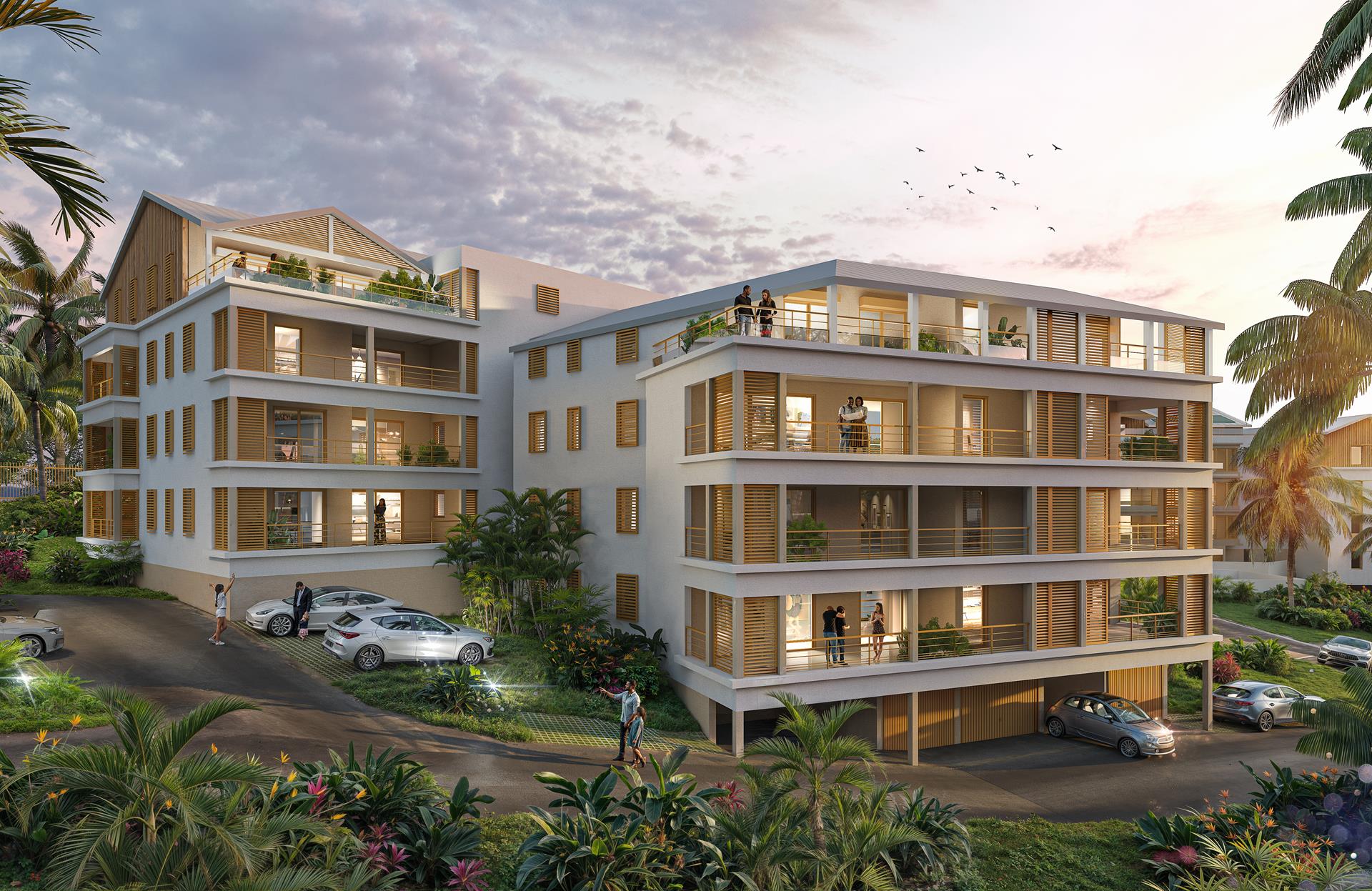 Leur orientation permet une ventilation naturelle; ils sont tous dotés d'une varangue aux dimensions généreuse et habillées de claustras métalliques. La verdure omniprésente règne autour de la propriété et en coeur d'îlot , aérant des zones d'ombrage et de fraîcheur végétalisées.